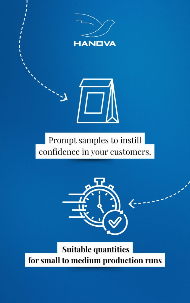 And to reassure your customers, we can provide you with samples from similar productions quickly, without waiting for production to start.